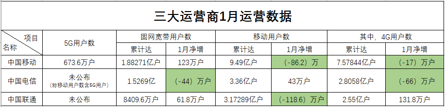 ICCSZ訊(編輯:Debi)2月20日,三大運營商紛紛公布2020年1月運營數(shù)據(jù)。