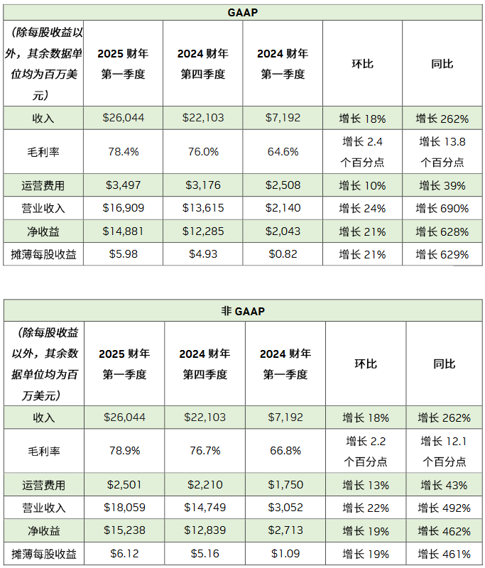 第一季度收入創(chuàng)下 226 億美元的紀(jì)錄,較上一季度增長(zhǎng) 23%,較去年同期增長(zhǎng) 427%。