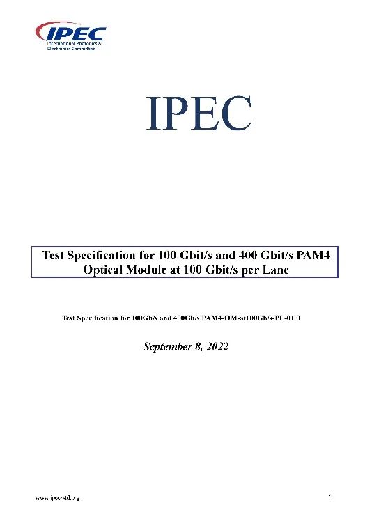 《基于100 Gbit/s/Lane的100 Gbit/s和400 Gbit/s PAM4光模塊測試規(guī)范》