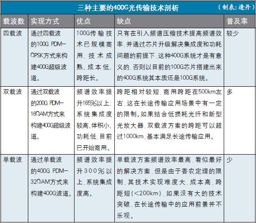 從廠商推出的解決方案來看,400G光傳輸網(wǎng)絡(luò)主要通過四載波、雙載波和單載波三種方式實(shí)現(xiàn),三種方案各有優(yōu)劣勢。