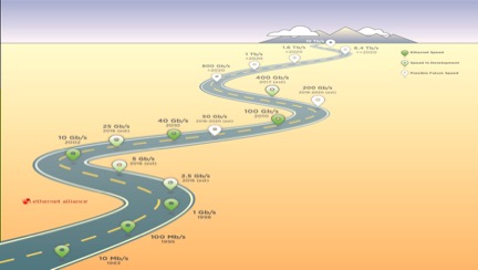 IEEE目前正在開發(fā)的以太網(wǎng)絡(luò)標(biāo)準(zhǔn)有2.5Gbps, 5Gbps以太網(wǎng),主要應(yīng)用于無線網(wǎng)絡(luò)接入點(diǎn);25Gbps, 40Gbps,50Gbps以太網(wǎng)主要應(yīng)用于服務(wù)器;100Gbps, 200Gbps以太網(wǎng)主要應(yīng)用于數(shù)據(jù)中心網(wǎng)絡(luò)主干;400G主要用于運(yùn)營(yíng)商中心機(jī)房,400G以太網(wǎng)的標(biāo)準(zhǔn)預(yù)計(jì)于2017年頒布。