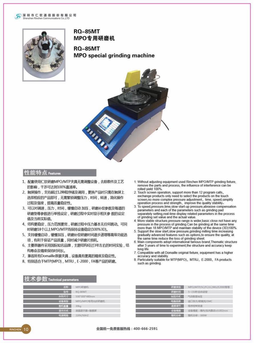 CIOE2017參展的五款自動化設(shè)備包括:RQ-BQ300 多芯剝機(jī)、全自動SC FC 散件組裝機(jī)、RQ-BLJ100三合一剝纜機(jī)、RQ-85MT MPO 專用研磨機(jī)、RQ-SAMI-GS 光纖連接器3D干涉儀。以下是五款自動化設(shè)備相關(guān)情況圖: