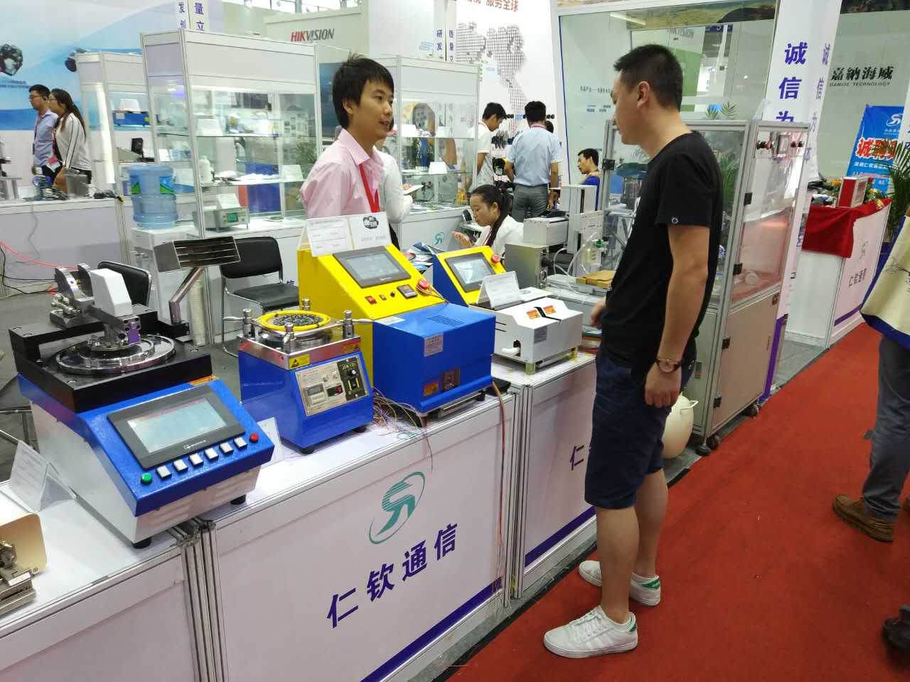 9月9日上午,在光博會最后一天,訊石拜訪深圳仁欽通信設(shè)備有限公司位于1號館展位:1C53,與仁欽通信王總進(jìn)行了愉快的交流。仁欽通信成立于2005年,其前身為深圳市仁欽科技有限公司,是一家集研發(fā),生產(chǎn),銷售光纖連接器生產(chǎn)設(shè)備與服務(wù)為一體的自主創(chuàng)新型高新科技企業(yè)。公司專業(yè)從事光纖跳線,光纖連接器的生產(chǎn)、研磨、測試、設(shè)備以及各種光器件設(shè)備,自動化設(shè)備和周邊生產(chǎn)配套耗材等。2012年公司順利通過技術(shù)升級和股份改制,并成功注冊LOGO商標(biāo)。