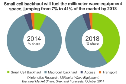* Infonetics預測,戶外small cell回程毫米波設(shè)備增長率將超過市場的其它細分部分,預計其2013年至2018年的復合年增率為101%。