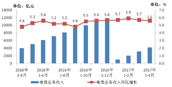 圖1 2016-2017年4月電信業(yè)務(wù)收入發(fā)展情況