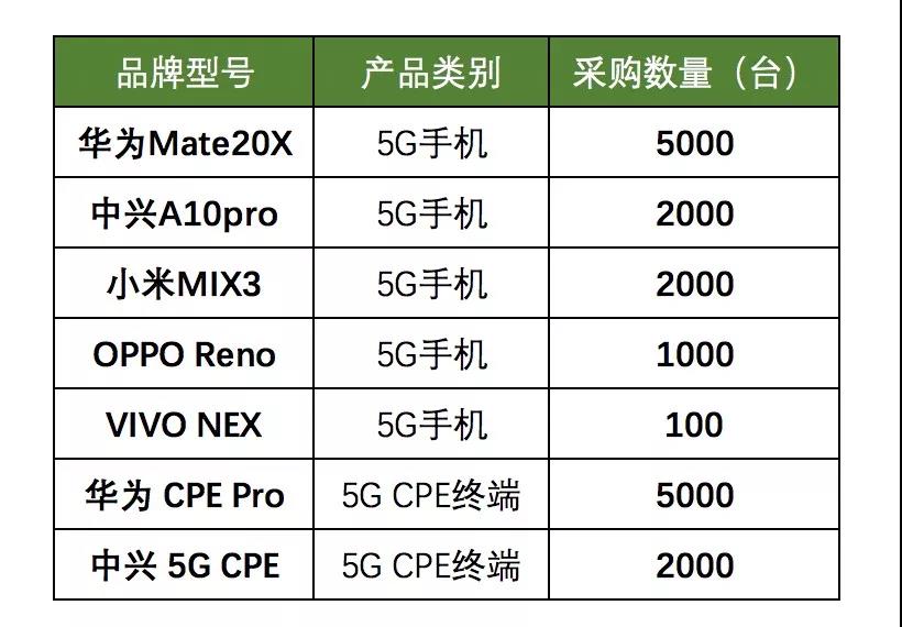 公告顯示,此次集采將采購1.71萬臺(tái)5G終端,其中5G手機(jī)10100臺(tái),5G CPE終端7000臺(tái),具體如下: