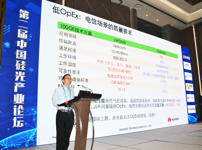 華為公司專(zhuān)家謝耀輝博士發(fā)表《客戶(hù)視角看光模塊與硅光產(chǎn)業(yè)》的主題報(bào)告,他表示光模塊的大帶寬高速互連能力,可以涵蓋數(shù)十米到上千公里的場(chǎng)景,因此具有很高的商業(yè)價(jià)值。光模塊應(yīng)該看作是一個(gè)子系統(tǒng),只有進(jìn)行單板器件級(jí)別的適 配與測(cè)試,才能保證光模塊 在設(shè)備上各項(xiàng)參數(shù)最優(yōu),長(zhǎng)期穩(wěn)定運(yùn)行。硅光模塊具有極簡(jiǎn)架構(gòu)、經(jīng)濟(jì)量產(chǎn)、高度集成、可插拔和光口標(biāo)準(zhǔn)帶來(lái)的互聯(lián)互通。硅光技術(shù)可行路徑,謝博士推薦異質(zhì)平臺(tái)的集成,要探索電組件與光組件的最佳集成,建設(shè)面向未來(lái)的基礎(chǔ)光電平臺(tái),這需要產(chǎn)業(yè)協(xié)同和持續(xù)投入。