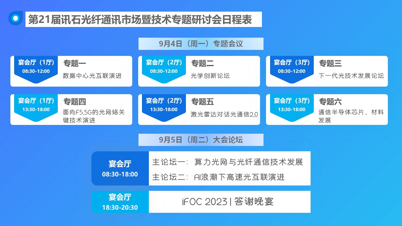 會議名稱:第21屆訊石光纖通訊市場暨技術(shù)專題研討會(iFOC 2023)