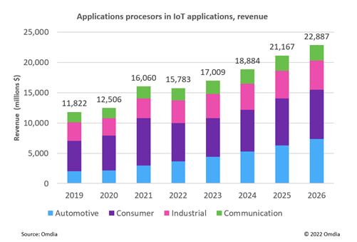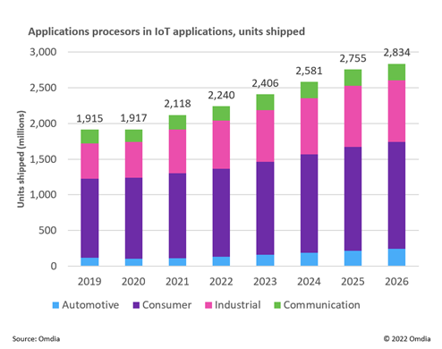 Omdia劃重點(diǎn):汽車和工業(yè)將領(lǐng)銜未來(lái)物聯(lián)網(wǎng)應(yīng)用處理器市場(chǎng)增長(zhǎng)