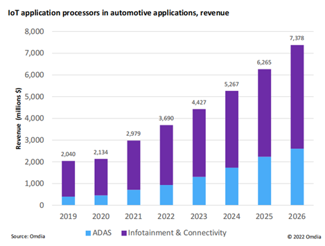 圖3.汽車應(yīng)用中的物聯(lián)網(wǎng)應(yīng)用處理器收入分析