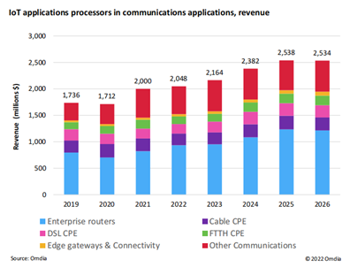 圖8. 通信應(yīng)用中的物聯(lián)網(wǎng)應(yīng)用處理器收入分析