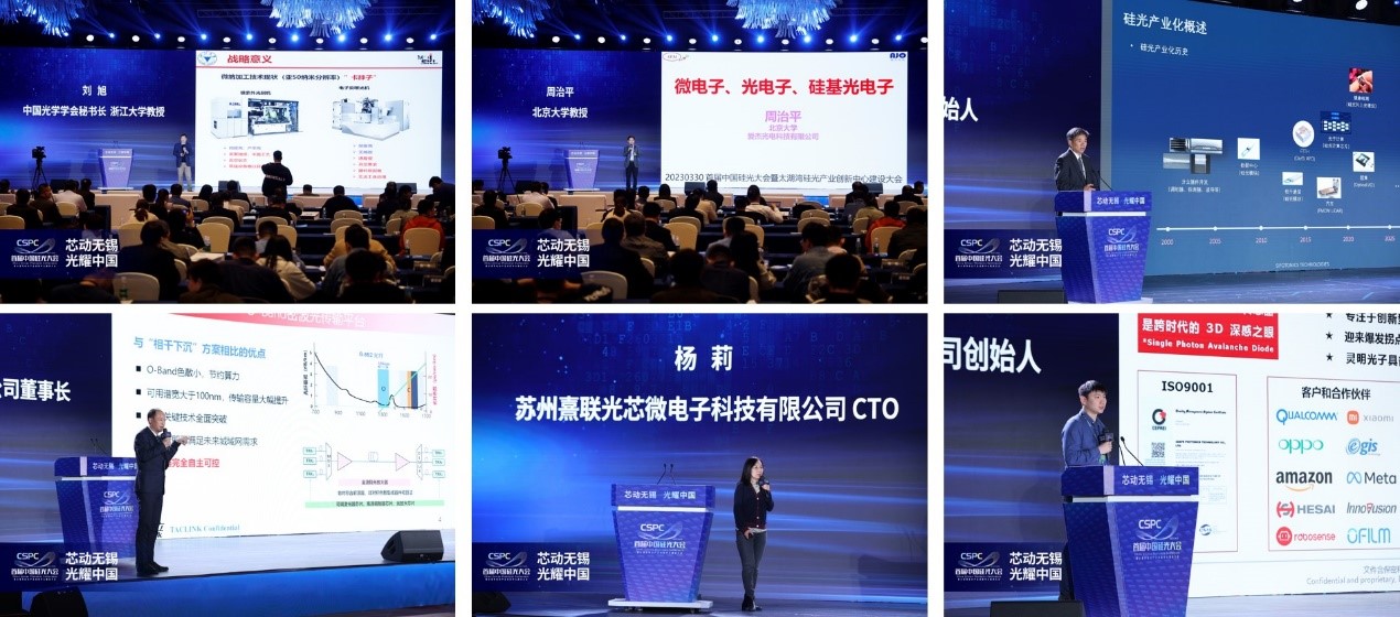 在主題報(bào)告階段,由無錫物聯(lián)網(wǎng)創(chuàng)新中心總經(jīng)理陳大鵬主持,中國光學(xué)學(xué)會(huì)秘書長和浙江大學(xué)教授劉旭、北京大學(xué)教授周治平、SiFotonics創(chuàng)始人潘棟、蘇州熹聯(lián)光芯微電子科技有限公司CTO楊莉、德科立光電子技術(shù)股份有限公司董事長桂桑、深圳市靈明光子科技有限公司創(chuàng)始人臧凱、北京青輝光科科技有限公司CEO常林等硅光子領(lǐng)域技術(shù)精英先后發(fā)表了前沿技術(shù)的產(chǎn)業(yè)報(bào)告,講述全球硅基光電子技術(shù)創(chuàng)新以及產(chǎn)業(yè)鏈配套生態(tài)發(fā)展。
