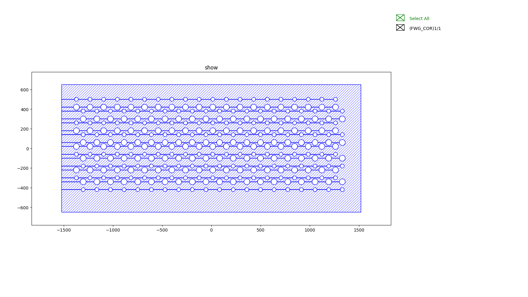 需要注意的是,版圖展示中的尺寸與論文并不一致,論文中的光子晶體參數(shù)設置與晶格常數(shù)息息相關。
