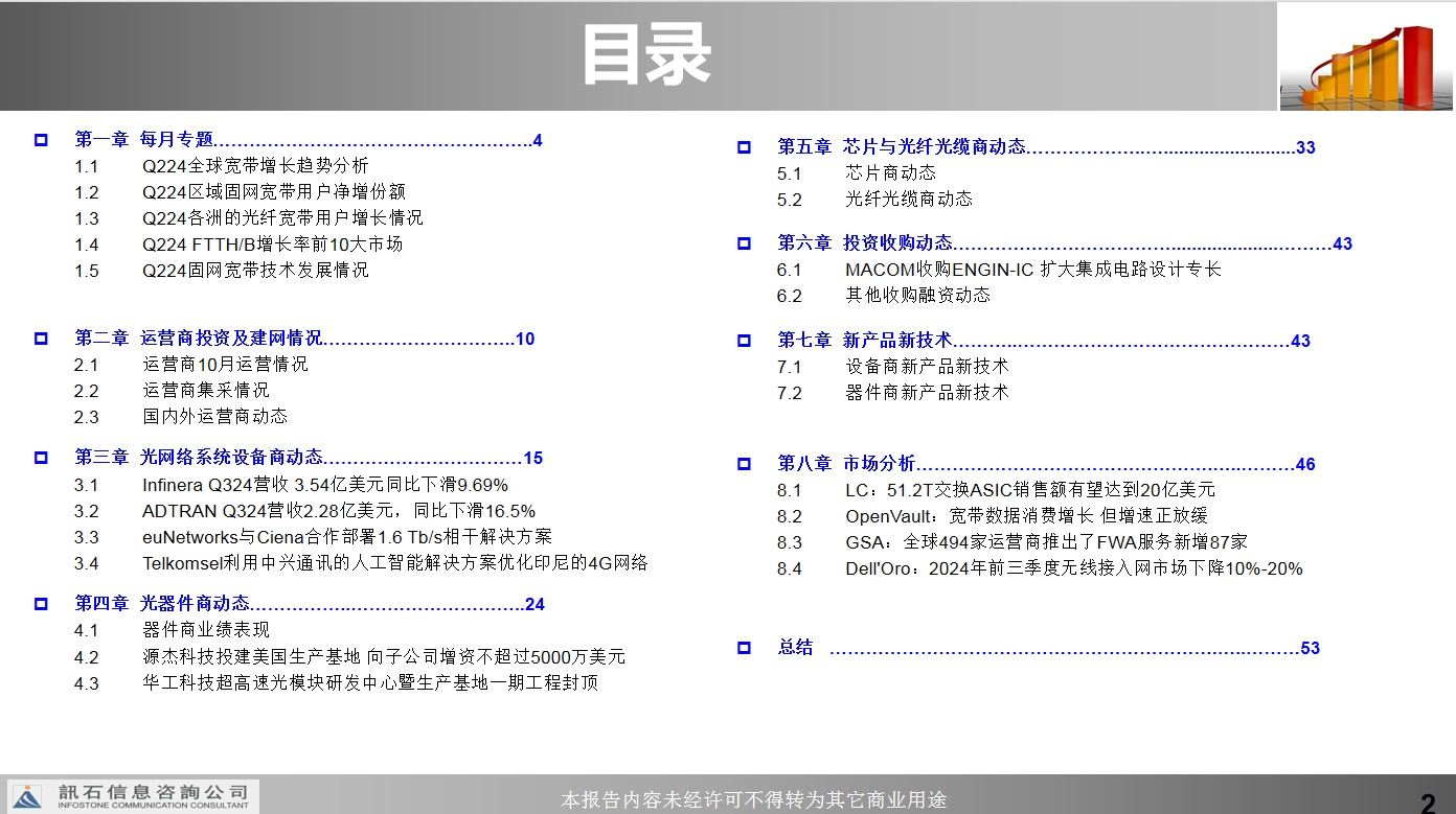 ICC訊 訊石 2024年11月《全球光通訊市場(chǎng)動(dòng)態(tài)》專(zhuān)題月報(bào)出刊,會(huì)員公司可以通過(guò)郵件接收。