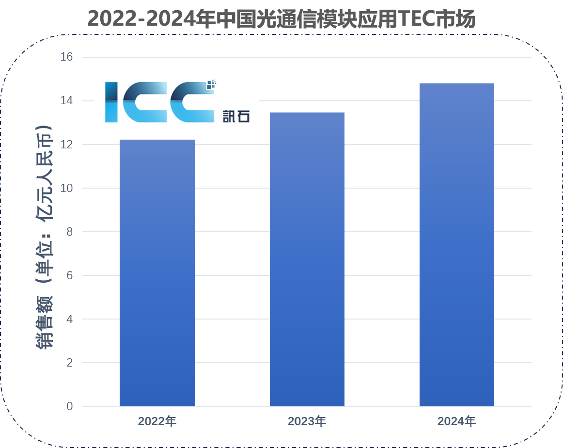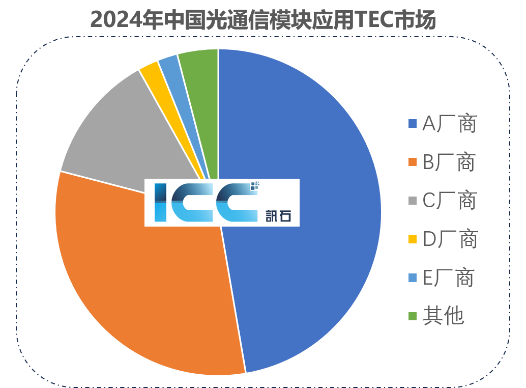 根據(jù)ICC訊石與產(chǎn)業(yè)人士溝通了解,光通信TEC市場伴隨著400G/800G高速光模塊出貨量高漲而在最近三年中屢創(chuàng)新高。中國光通信市場光模塊TEC組件銷售額在最近三年以6.59%復(fù)合年增長率(CAGR)達到2024年14.8億元人民幣,市場主要廠商包括RMT 、FerroTec、Phononic等國外公司,富信、北冰洋等國內(nèi)廠商開始向重要光通信設(shè)備和光模塊客戶導(dǎo)入產(chǎn)品。其他廠商,例如小松主要供應(yīng)日本市場,而Malow主要供應(yīng)其母公司Coherent高意,部分產(chǎn)品向中國發(fā)貨。