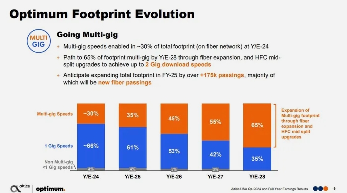 Altice USA估計,目前幾乎95%的服務(wù)區(qū)域已提供1-Gig的速度,并預(yù)計到2027年底實現(xiàn)全覆蓋。