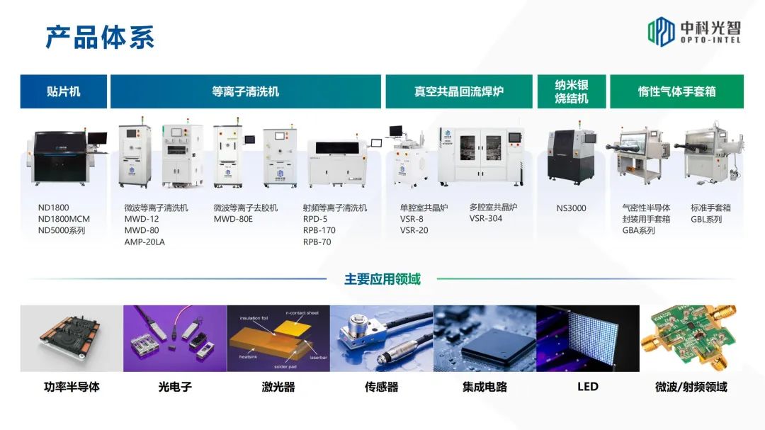 面對這些挑戰(zhàn),中科光智聚焦開發(fā)高精度多工藝平臺,更好的滿足多種應(yīng)用場景下的高可靠性封裝,同時將深化產(chǎn)業(yè)鏈協(xié)同,向客戶推出更加全面、完美的貼裝解決方案。公司目前主營產(chǎn)品有貼片機(jī)/固晶機(jī)、等離子清洗機(jī)、真空共晶回流焊爐、納米銀燒結(jié)機(jī)、惰性氣體手套箱五大類。中科光智目前已經(jīng)為業(yè)內(nèi)知名光器件廠商提供產(chǎn)品,并為客戶匹配高專業(yè)水平、高服務(wù)水平、高應(yīng)急能力的售前售后團(tuán)隊,做到24h全天候迅速響應(yīng),幫助客戶第一時間找準(zhǔn)問題、解決問題。