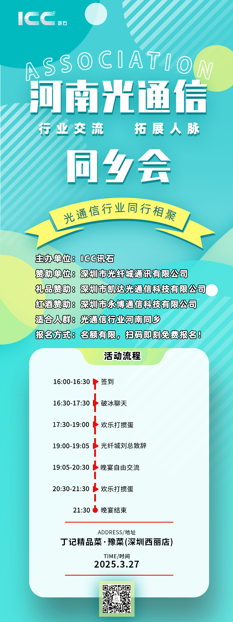 同行同鄉(xiāng)間的溝通就是互相灌溉,誠(chéng)摯地邀請(qǐng)光通信行業(yè)在深圳的河南同仁出席本次聚會(huì)!是難得的同鄉(xiāng)間的互訴衷腸,也是充滿未來(lái)暢想與志同道合的朋友們共度美好時(shí)光的絕佳機(jī)會(huì)。在這里,您將體驗(yàn)到最溫暖的鄉(xiāng)鄰關(guān)懷,品嘗最地道的家鄉(xiāng)美食,參與趣味橫生的摜蛋游戲挑戰(zhàn),還能與同鄉(xiāng)間產(chǎn)生更多的靈感互助激發(fā)未來(lái)的無(wú)限可能。