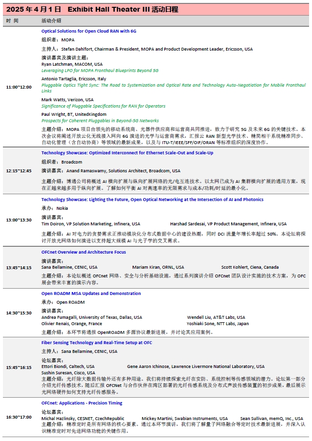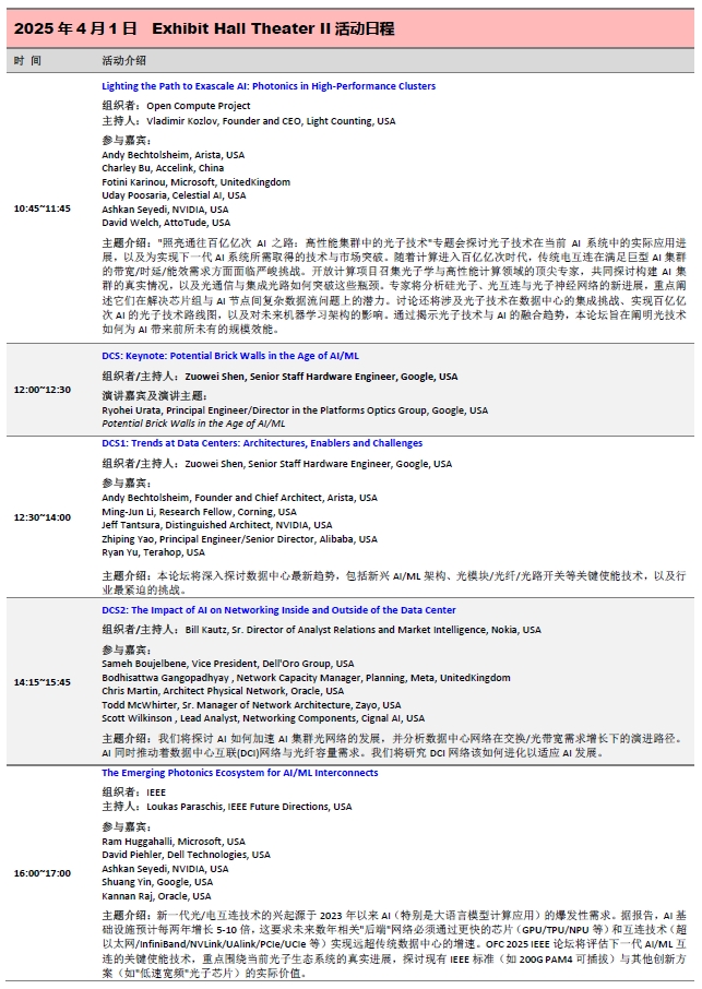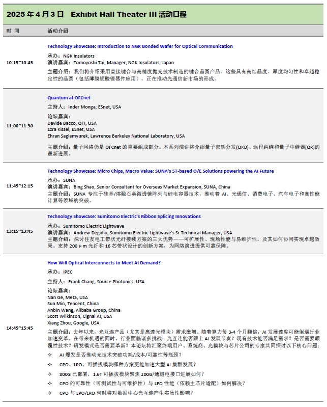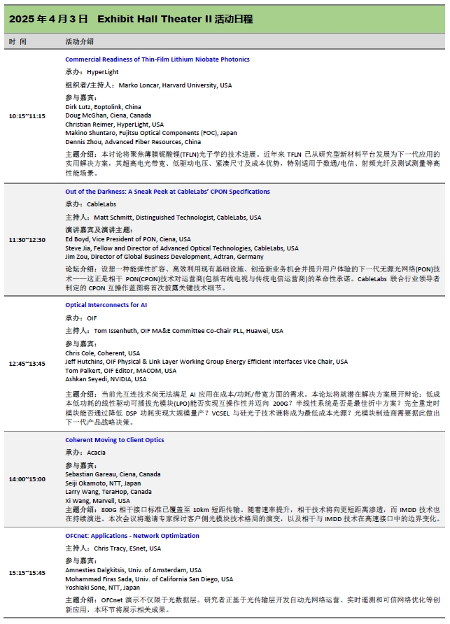OFC2025展區(qū)活動:三天免費會議日程一覽