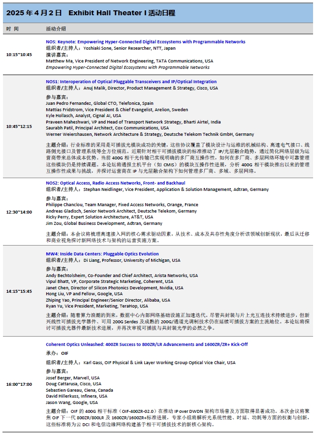 文章標題:OFC2025展區(qū)活動:三天免費會議日程一覽