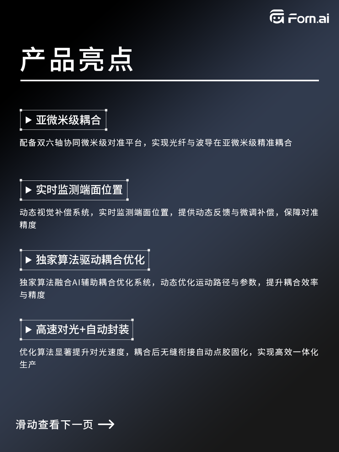 ICC訊 形識智能源于對精密耦合本質(zhì)的深刻洞察,專為PLC/AWG等光通信核心器件打造的高精度、智能化耦合與封裝裝備——光波導芯片耦合裝備。集成雙六軸微米級調(diào)校、動態(tài)視覺閉環(huán)補償與智能優(yōu)化算法,實現(xiàn)高速精準對光與自動點膠固化,顯著提升生產(chǎn)良率與效率。