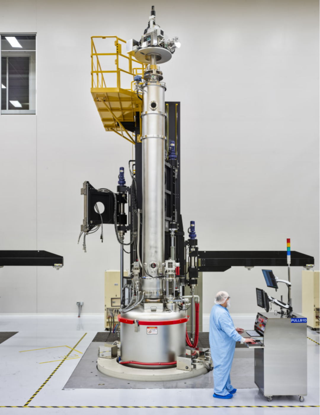 這些巖石在2500華氏度的溫度下熔化,在一臺35英尺高的被稱為單晶爐的機器內(nèi)形成完美的硅“晶體”。這些機器實際上將硅晶體生長成重達數(shù)百磅的圓柱形硅錠。