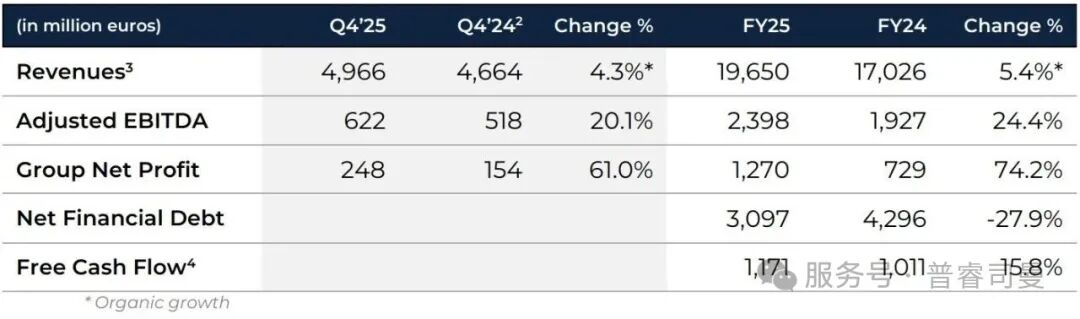2025財年,集團(tuán)收入達(dá)196.50億歐元(2024財年為170.26億歐元),有機(jī)增長率為+5.4%。