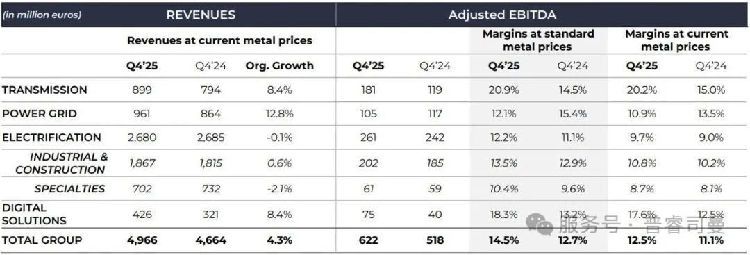 電網(wǎng)業(yè)務(wù)實(shí)現(xiàn)強(qiáng)勁增長(由北美及歐洲驅(qū)動),并取得穩(wěn)健盈利能力,盡管第四季度架空輸電線路業(yè)務(wù)的金屬溢價飆升帶來暫時性影響。