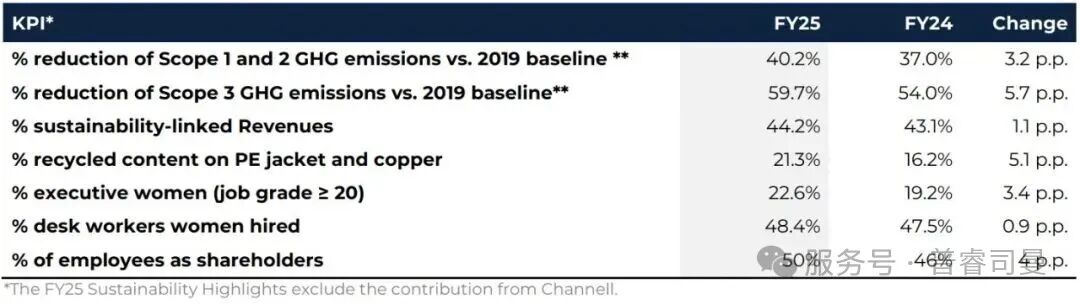 所有可持續(xù)發(fā)展關(guān)鍵績效指標(biāo)持續(xù)取得穩(wěn)步進(jìn)展,包括50%的員工成為股東(提前三年實(shí)現(xiàn)2028年目標(biāo))以及范圍1和范圍2溫室氣體排放較2019年基線減少40.2%(2024財年為37.0%)。